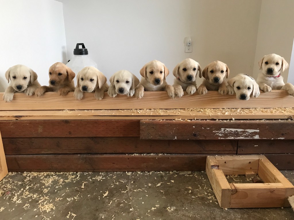 On April 21, 2020 we had our first litter of nine Yellow Lab puppies. They grew into amazing dogs, and we have continued to have a litter about once per year. The current litter was whelped July 15, 2023. The stud, Mahomes, is from Merganser Labrador Retrievers.