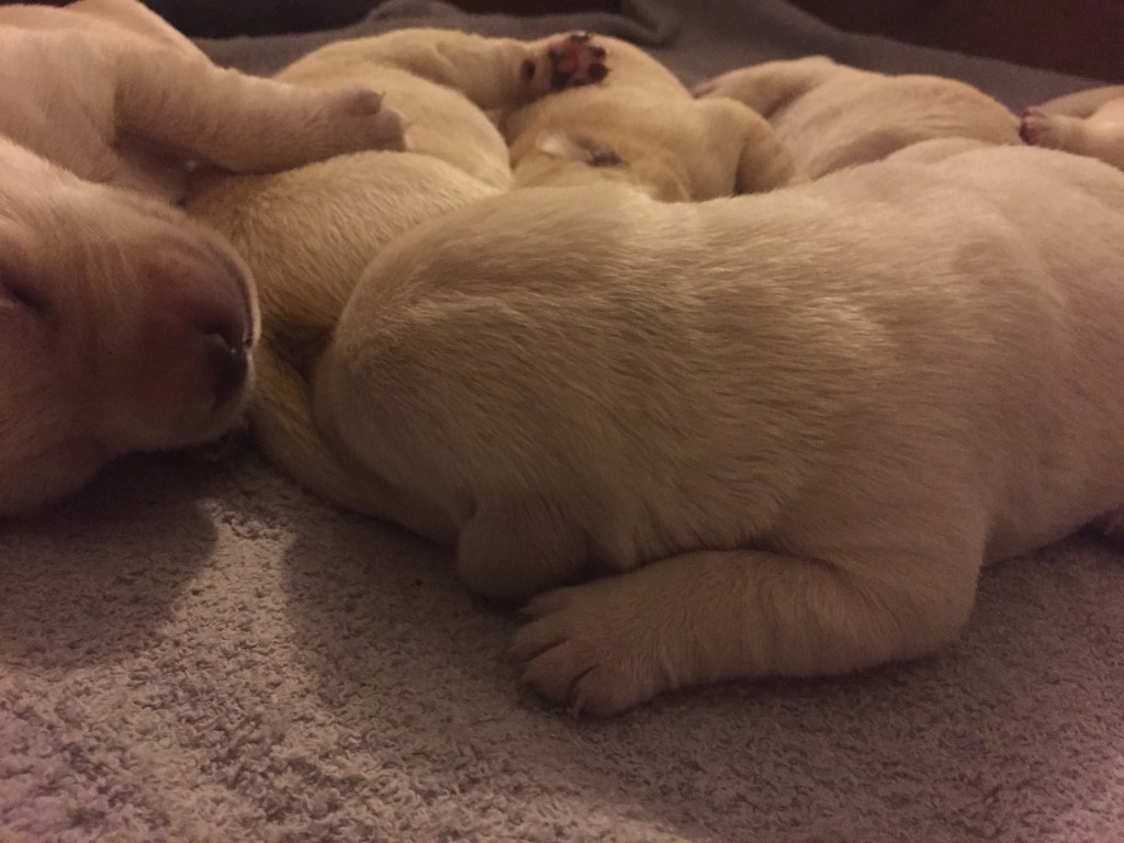 Puppy Update (Pictures and Video) Posted byoregonsunshinelabsApril 29, 2020Posted inUncategorized Photos from 4-28 (One Week Old). One group photo and one of each puppy however they were laying. Share this: Share on X (Opens in new window) X Share on Facebook (Opens in new window) Facebook Like Loading... Related